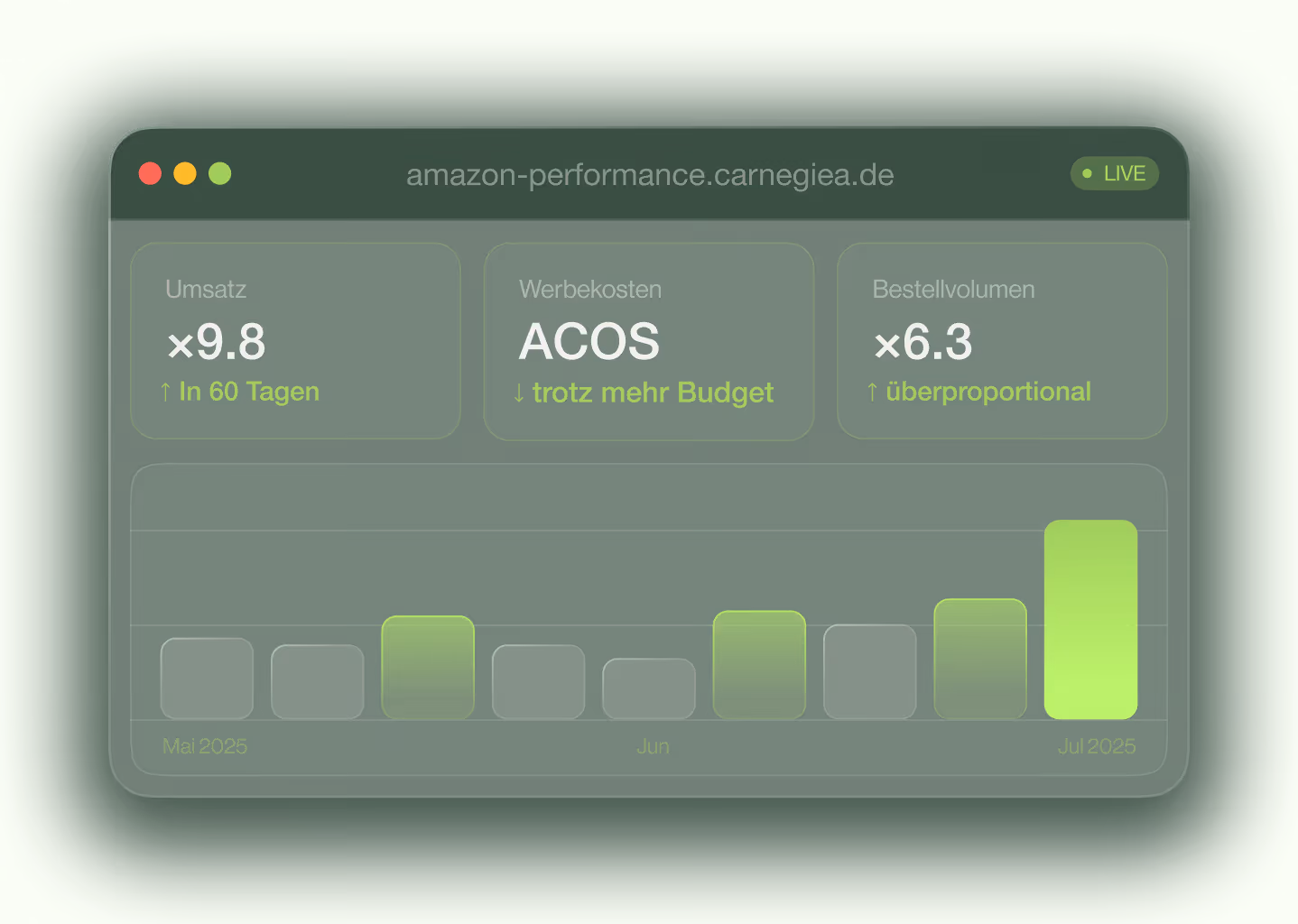 Nahezu verzehnfacht in 60 Tagen – durch vollständigen PPC-Neuaufbau, klare Kampagnenstruktur nach Suchintention und konsequente Fokussierung auf margenstarke Keywords.